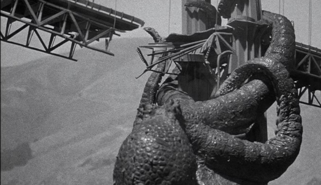 A giant octopus, whose feeding habits have been affected by radiation from H-Bomb tests, rises from the Mindanao Deep to terrorize the California Coast.